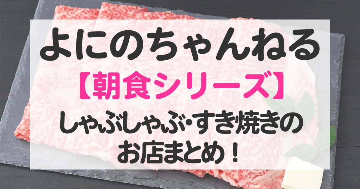 よにのちゃんねるで人気の【朝食シリーズ】しゃぶしゃぶ・すき焼き回をまとめてみました!お店の名前や場所、二宮和也さん、山田涼介さん、菊池風磨さんが注文したメニューを参考に、ぜひ聖地巡礼してみてくださいね♪ ※最新順です。随時更新中! 【麻布十番】だるま(#476 / 2025年11月19日配信) https://www.youtube.com/watch?v=h9l4U27yN9A よにのちゃんねる #476(2025年11月19日配信回)で二宮和也さん、山田涼介さん、菊池風磨さんが訪れたのは麻布十番の「だるま」です。「だるま」は90年代から愛され続け...【よにのちゃんねる#474】杏さんと朝食の卵かけご飯・親子丼を食べたのは千石の「喜三郎農場」?注文したメニューは?【二宮和也・山田涼介・菊池風磨】