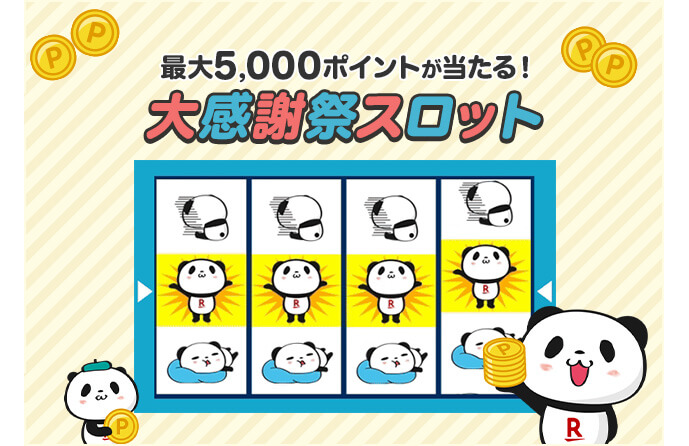 こちらのスロットで当選すると、楽天市場の全ショップのお買い物に使える「10000ポイント」or「20ポイント」(期間限定ポイント)が獲得できます。