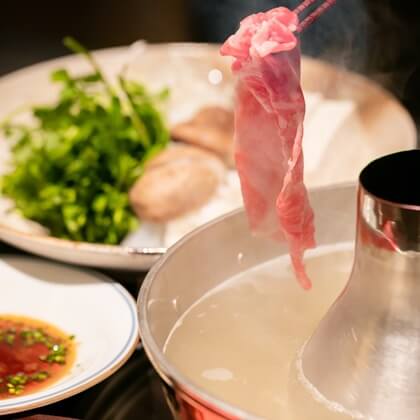 東北から九州迄のその日一番のA5ランク牛を仕入れ、自家製胡麻だれを使ったしゃぶしゃぶや煮干し出汁によるすき焼きを楽しむことができます。